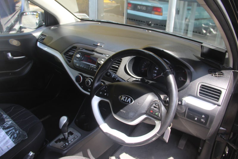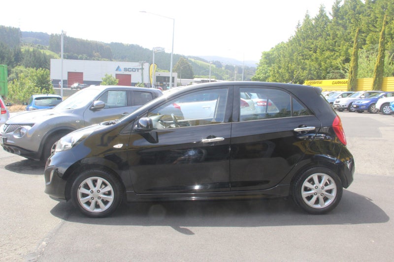 What a great wee shopping basket this is-Look Only 58,510 km-2013 Kia Picanto 5 Door Hatch-Looks Smart in Black-14 Inch Factory Alloys-1250cc Engine-Automatic-Multiple Airbags - Electronic Stability Control-Reversing Camera-Blue Tooth-AUX-USB-Day Time Running Lights-Fresh Service-Fresh Warrant-No Deposit Finance-Come on in and have a test drive, Open 7 Days...