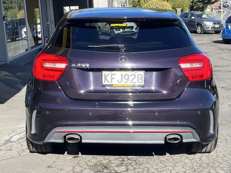 This A250 is a beauty .... a very sharp looker in the rare AMG colour Northern Lights Violet Metallic and set off with Red highlights, Twin Exhausts and a nice set of 18 inch Black/Silver AMG Alloys